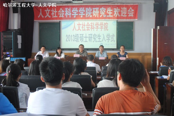 第一部分:开学仪式。第一项,介绍参加会议的领导和教师,第二项,由2013级硕士研究生学生代表刘宇慧发言。她的发言表达了他们将以坚强的意志良好的心态面对未来的挑战,刻苦学习扎扎实实走好以后的每一步,最后她对哈尔滨工程大学六十周年校庆表达了衷心的祝福。第三项,由法学系副主任刘沫茹发表讲话。她首先对2013级研究生的到来表示欢迎,并祝贺他们跨入了一个新的学习平台。同时也提出几点希望。进入研究生学习后,大家尽早确立目标,尽快转变学习角色,由被动学习变为主动研究,在研究生阶段树立明确的奋斗目标,将自身的成长成才与专业学习紧密结合起来;希望大家多读书,读经典,科学地制定读书计划,以不断提高个人的学术素养;希望大家要踏踏实实为事,老老实实为人。第四项,由人文学院院长金宏章为今天欢迎会致辞。金宏章讲解了学院办学的特色定位、师资力量、承担的使命、精英教育以及角色转换等方面,希望新入学的研究生们积极配合导师学习,努力奋斗,创造未来。