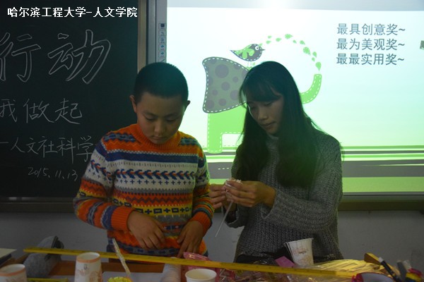 此次启航行动采用授课与实践活动相结合的形式。支教队员们进行简单的自我介绍后,王双引出本次关于环保的话题。她先向孩子们展示我国的环境污染、物种濒危等严重问题,引发孩子们的关注和思考。接着,孩子们在支教队员的安排下观看纪录片并积极参与讨论问题,课堂氛围十分活跃。下半节课,王双带领孩子们制作美观又环保的手工装饰品“雏菊”。志愿者们在旁为小学生们一一进行指导。启航行动在和谐的气氛中落下帷幕。
