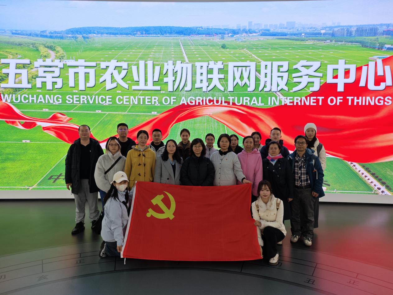 随后,支部前往五常市农业物联网服务中心。指挥大屏上实时滚动的电商数据、遍布全市的公共服务站点与直播间,以及基于区块链技术的“一袋一码”全程溯源体系,让党员师生深刻领略了数字党建引领智慧农业发展的前沿实践,对“藏粮于地、藏粮于技”战略有了更深刻的理解。