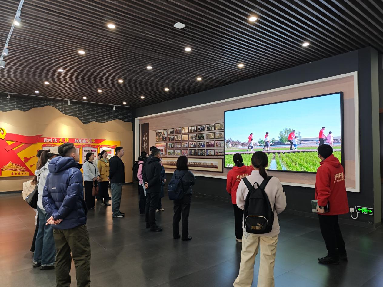 下午,支部一行来到全国文明村镇——常堡乡中华村。村党支部书记详细介绍该村以党建为引领,通过“网格化管理”“积分制激励”等机制,有效激发村民参与人居环境整治的内生动力。在稻米合作社,党员师生了解到,该村通过党组织引领合作社发展,实现统一生产经营,打响了“中华村”大米品牌,壮大了集体经济,展现基层党组织在推动产业兴旺、带领群众增收致富中的战斗堡垒作用。