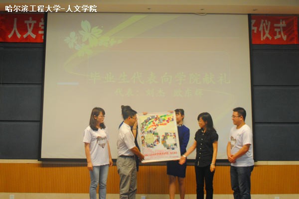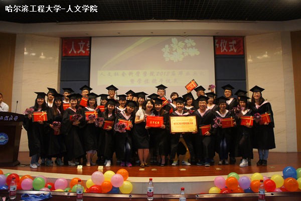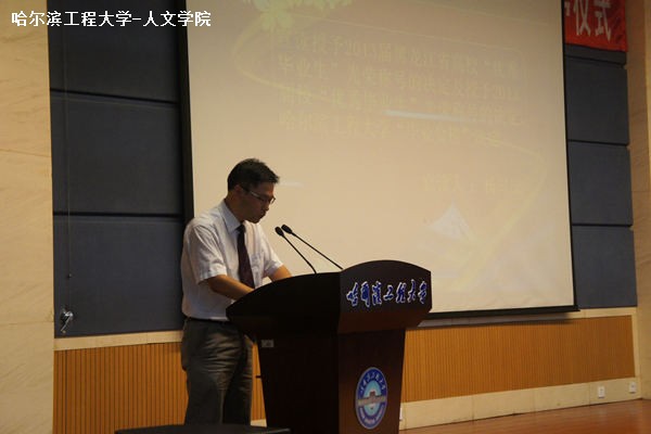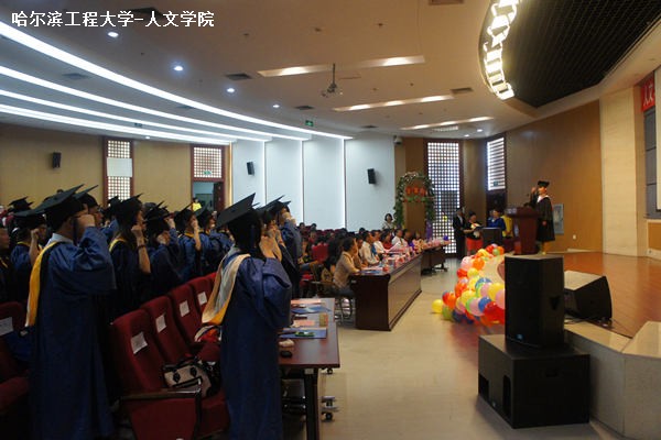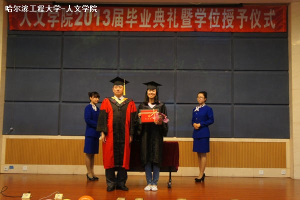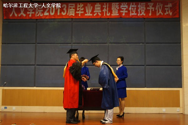 7月2日晚6点30分,人文学院于图书馆报告厅隆重举行2013届毕业典礼暨学位授予仪式。出席毕业典礼的嘉宾有哈尔滨工程大学纪委书记杨志宏、人文学院党委副书记杨国庆、人文学院副院长郑莉、人文学院院长助理曲晓丽、人文学院团委书记兼学工办主任董春辉。同时,法学系罗猛、刘沫茹、韩晋、社会学系刘军、心理学系蔡颖等教师代表,以及毕业生家长代表杨素萍、陆滨女士出席。另外参加此次毕业典礼的还有人文学院全体本科生和2013届硕士毕业生。