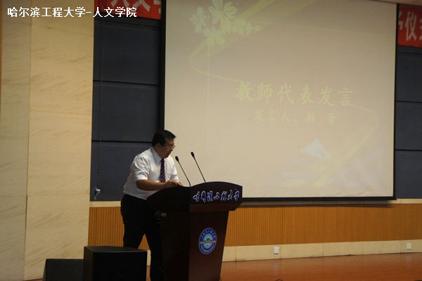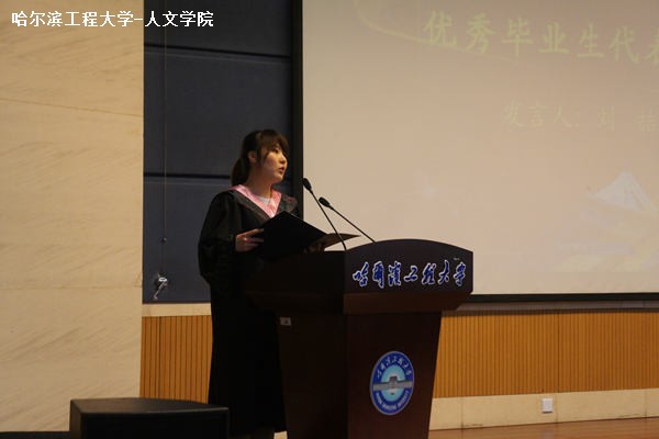毕业生家长代表杨素萍女士发表讲话,感谢学校和老师的精心培育和谆谆教诲,希望每一位毕业生可以成为社会有用之才,回报母校和社会,并深深祝福哈尔滨工程大学桃李天下。