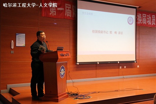 大会最后,郭峰总结发言。他肯定了上一届学生会的工作成果,并重拾自己做学生工作的经验,鼓励新一届学生会更好的发挥学生会自我教育、自我管理、自我服务的职能,使学生会在组织建设�思想教育�维权服务�舆论宣传�校园文化等方面起到更加积极的作用。