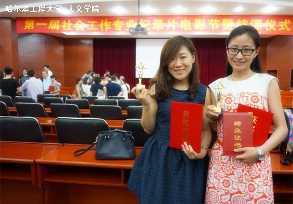 2015年5月27日至6月3日,我院教师韩雪、李雪参加了在南京理工大学举办的第一届社会工作纪录片制作专题培训,并在6月3日举行的第一届社会工作专业纪录片电影节上获得“最具感召力奖”。本届电影节共十三组队伍参与纪录片展映,其中,前三甲队伍获得“最具感召力奖”。