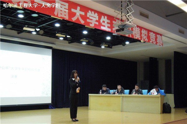 (宣传中心记者团记者李彦、李贶琦报道)10月27日晚6点45分,由哈尔滨工程大学校团委、校学生科技协会主办,人文社会科学学院、马克思主义学院党委,大学生就业指导中心、人文赛训中心承办的第一届大学生求职模拟竞赛在启航多功能活动厅如期举行。由陈佳慧担任主持人,由李洪江、赵岩、张龙飞、高博担任评委。参赛人员为哈尔滨工程大学的10位本科生。
