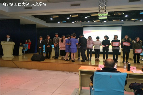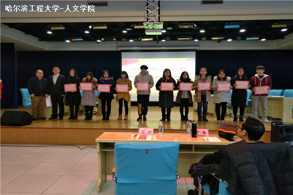 颁奖仪式开始,首先主持人宣读获奖名单。随后,获奖学生姜慧、索娜、张义松、贺梦茹、李颖超、张一冉、张杰、袁媛、马姝、谢思林、杨檬、张依然、王溪鹤、王梦森、马昊、卢森、张暖晴、宋睿、焦冰燃、李诗妍、罗军、焦阳、陈佳慧、陈敏行、王梦迪、 于仁凤、祝丽巍、韩森、廖晨燕、胡曜川依次上台领奖,颁奖嘉宾颁发证书并与同学们进行合影留念。
