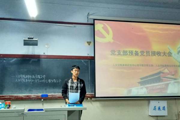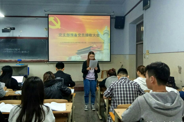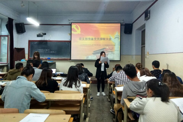 (宣传中心记者团记者 李慧影、任怡颖报道)6月1日晚6时30分,人文社会科学学院本科社会学心理学联合党支部、本科法学党支部于11号楼0124教室召开第37期学生预备党员接收大会。人文社会科学学院本科法学党支部书记王植主持会议,支部党员及学院14级、15级本科发展对象参加此次会议。
