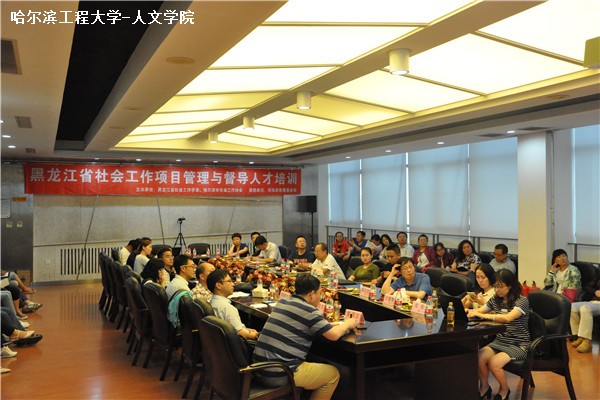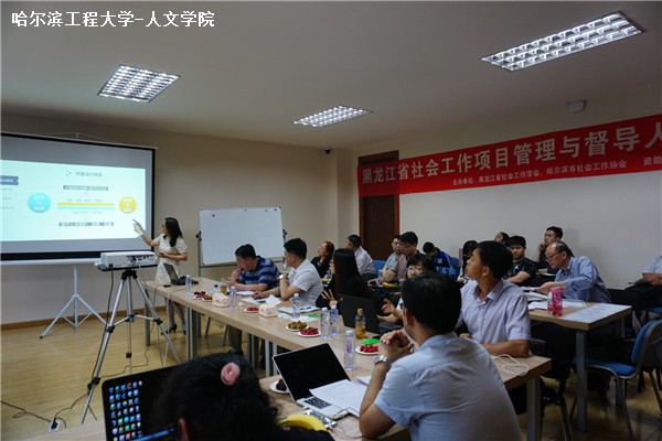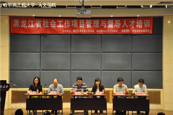 为总结、分享、交流前期对我省社工项目进行督导与评估过程中的好经验、好做法,分析存在的问题,切实提高我省社会工作项目执行能力和督导水平,有效促进我省社会工作专业化发展,在省民政厅社会工作处的指导下,6月15至19日,全省社会工作项目管理与督导人才培训在我校举行,培训由黑龙江省社会工作学会和哈尔滨市社会工作协会主办,省民政厅社会工作处处长袁绍志、我校人文社会科学学院院长、黑龙江省社会工作学会会长郑莉、美国加州大学伯克利分校社会福利学院教授周镇忠、香港社会服务发展研究中心陈安发、同佳岸慈善基金会执行秘书长汪黎黎及我校人文社会科学学院副院长、哈尔滨市社会工作协会会长杨国庆出席了开班式。来自全省各地市民政局、社工机构、相关院校共85人报名参加培训。此次培训邀请来自美国加州大学伯克利分校和香港社会工作领域的两位督导老师承担授课任务。另外本次培训也是黑龙江省社会工作学会与同佳岸慈善基金会的第一次合作,设置了优秀学员全额奖学金制度,同佳岸慈善基金会为培训评选出的20名优秀学员,提供了共计24000元的奖学金。
