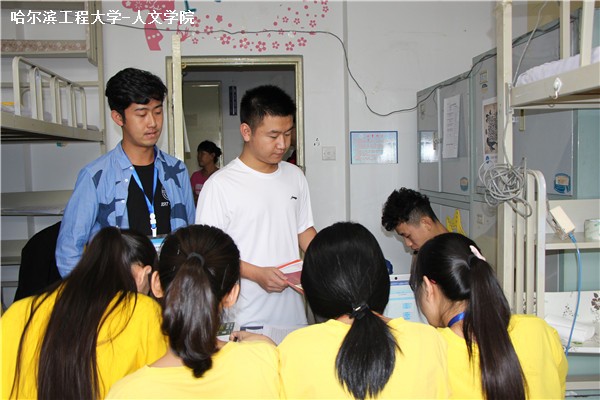 新生导航员在寝室为新生讲解入校须知