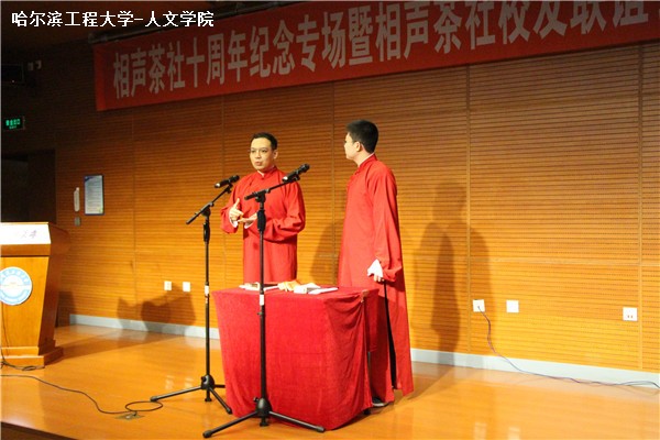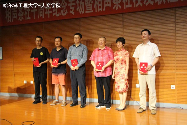 (宣传中心记者团记者 王锐报道)6月2日下午6时30分,哈尔滨工程大学相声茶社校友联谊会成立大会暨相声茶社十周年纪念专场演出于启航活动中心学术报告厅举行。哈尔滨市曲艺家协会驻会副主席兼秘书长、哈尔滨市非物质文化遗产相声代表性传承人王刚,校友办主任刘文,校团委书记史波,校友办副主任郭峰,人文学院党委副书记曹景杰,国防学院教师于凡,人文学院教师、相声茶社指导教师赵岩,学院辅导员董春辉、李瑶出席活动。