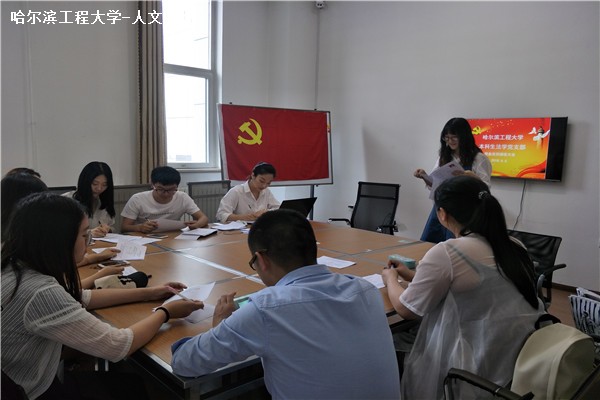 6月6日下午1分45时,人文学院法学本科党支部预备党员接收大会于图书馆研讨室召开。会议由施宇主持,法学本科党支部党员施宇、窦惠琳、周学瑶、谢俊伟、罗楠、凌梦、王可欣、刘柄兰、郭振远、阚颖及全体拟发展入党对象参加会议。