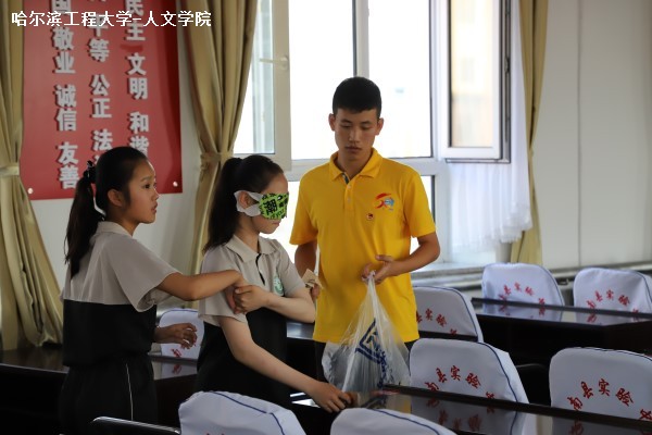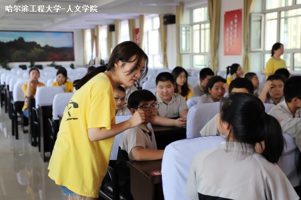 (宣传中心记者团严格格报道)7月10日上午8时,人文社会科学学院“三下乡”暑期社会实践团于桦南县实验中学与初一同学们一起进行心理游戏。本次活动由常务团委副书记姜璐路担任主持人,双创及社团管理中心主任袁鑫炀为活动负责人。学生会主席周雪瑶、团委副书记张启、宣传部部长何雨婷、赛事中心主任郭旗等实践团成员也参与到游戏中来。