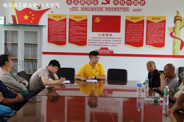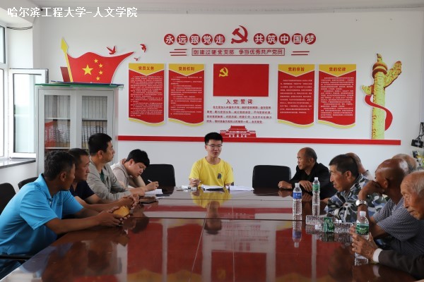 7月13日上午8时,人文社会科学学院“三下乡”暑期社会实践团于双合村党支部开展以“弘扬法治精神,构建和谐农村”为主题的宣讲活动,本次宣讲活动由常务团委副书记姜璐璐担任主持人,团委副书记张启、科协主席王晓旭、学生会副主席李青峰担任主讲人。本次宣讲活动邀请到双合村村支书与许多村民参加宣讲。