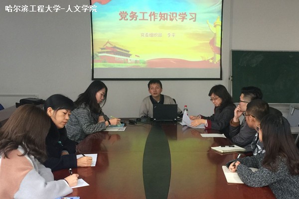 (宣传中心记者团记者 杨博儒、刘冰泉报道)10月25日下午3时15分,人文学院党委于主楼301室召开党支部书记“基层党务工作基础知识”培训会,学院院长郑莉、学院党委副书记曹景杰担任主讲人,教工法学党支部书记刘沫茹、教工社会学党支部书记唐国建、教工院直党支部书记张辉、学院辅导员董春辉,以及全体学生党支部书记参加此次培训会。