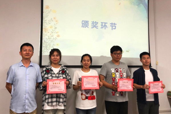 活动伊始,主持人宣读了活动表彰事项及获奖名单,获奖同学按次序上台领奖。紧接着,曹景杰依次对“七一”优秀学生党员、“七一”优秀学生党务工作者进行颁奖。然后,董春辉向“寻访校友”获奖同学进行颁奖。接下来,贺惠向“假期阅读”获奖者进行颁奖。最后,曹景杰进行思想指导讲话,他提出:第一,鼓励同学们发掘终身体育爱好,强身健体;第二:鼓励学生提高语言表达能力,为走上社会工作岗位不断提升个人能力,在为同学服务的过程中提升自己的党性觉悟;第三,鼓励学生树立远大崇高理想,提高思想素质,在思想指引下不断进步,勇攀高峰。