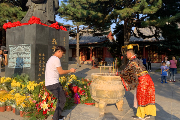 人文学院19级辅导员李瑶说:“祭孔大典是对至圣先师孔子的祭奠,也是对儒家文化的延续,更是对中华民族优秀传统的守望。此次祭孔恰逢新中国成立70周年,我们人文学院也以这种特殊的方式祝祖国母亲生日快乐、繁荣昌盛。”