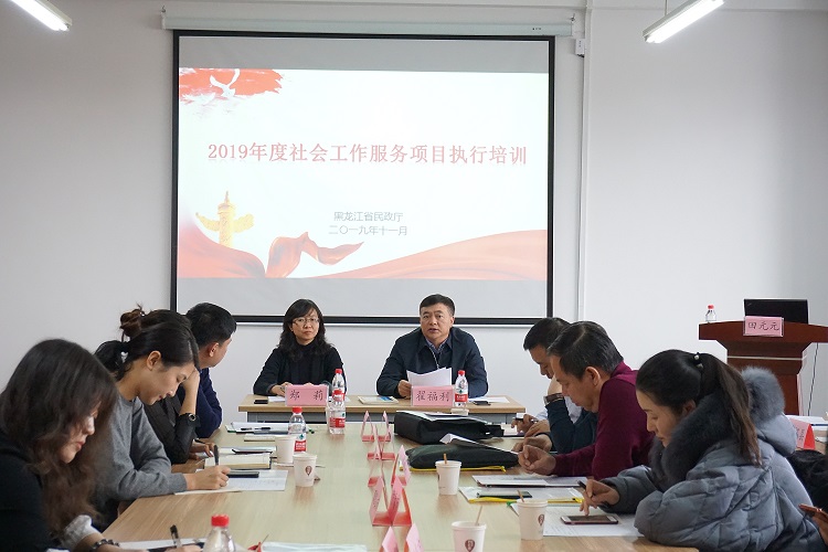 为深入学习党的十九届四中全会精神,贯彻落实民政部2019年社会工作行业管理专题研修班精神,以及全省社会工作联席会议第一次会议要求,推进2019年度全省社会工作服务项目切实开展,保障项目质量与成效,加强专业人才队伍建设,黑龙江省民政厅委托黑龙江省社会工作学会于11月27-28日在哈尔滨工程大学人举办2019年度社会工作服务项目执行培训,并在培训期间开展主题调研座谈会。
