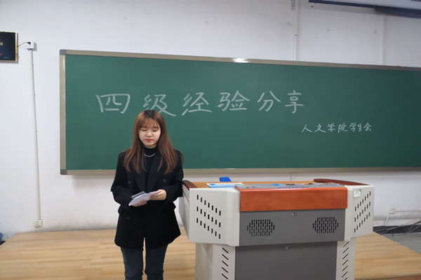 (人文学院记者团 钟栎泳报道)9月23日晚6时30分,人文学院于N603教室举办新老生四级经验分享会。此次活动由学生会权益部举办,杜思蒙、王根担任主讲人,2020级全体同学参加。