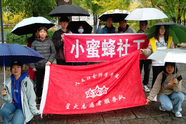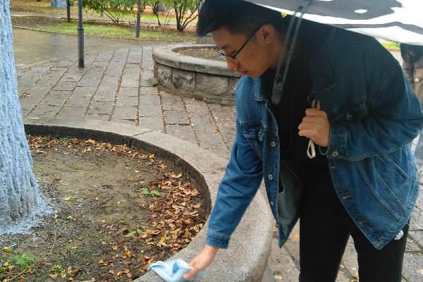 活动开始,学生手持预先准备的清扫工具,到达指定位置;随后,开始着手清理地面的枯叶,擦拭长椅,并徒手捡地上的枯枝;志愿者们在本次活动仔细清扫,使济海湾恢复了整洁干净。