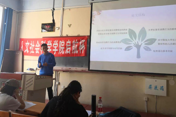 比赛开始,进入决赛的项目组按照顺序派出一位代表进行答辩;接着,由评委进行提问打分;最终根据评委们的慎重考虑评选出优秀项目,并进行颁奖。人文学院获得个人一等奖3个,二等奖3个,三等奖6个;张小棠获得异想天开奖,人文学院获得优秀组织奖。