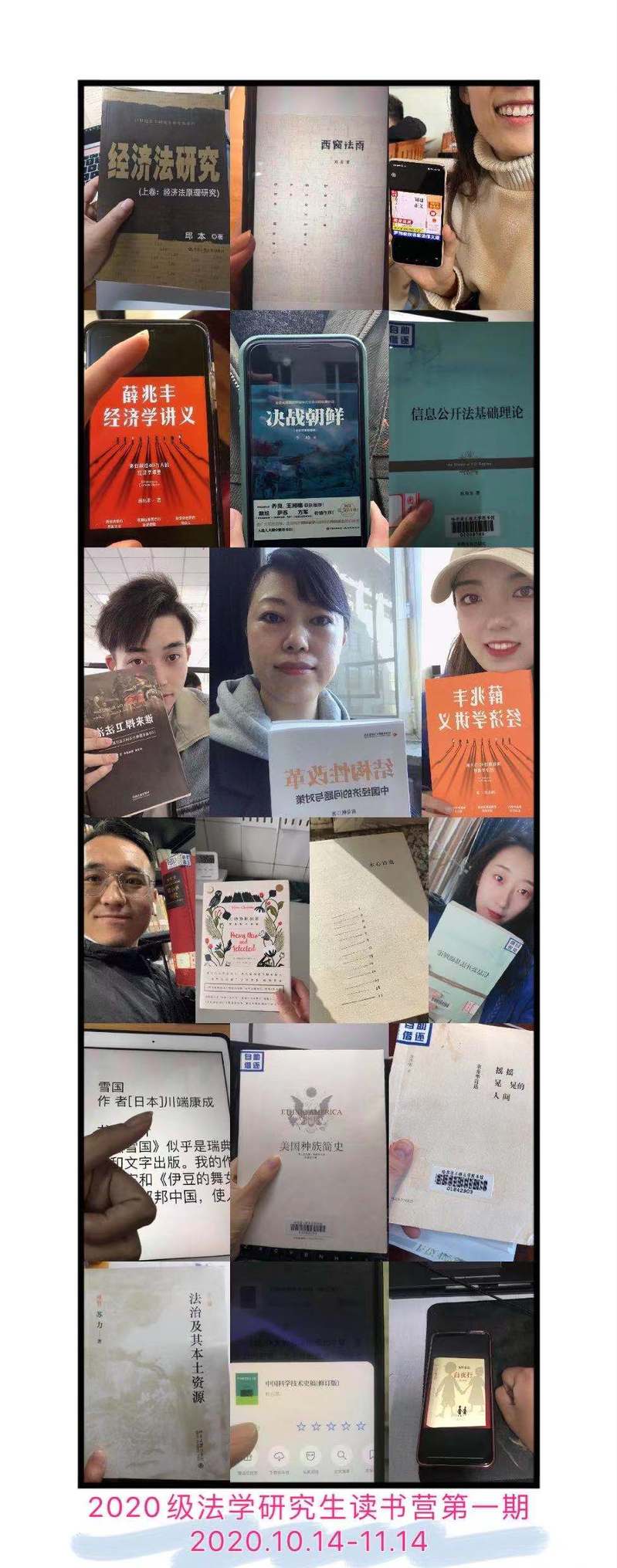 法学研究生读书营源于教师法学党支部书记刘沫茹老师的号召,旨在带领在校法学学生“一个月读一本好书”,遂于2020年10月正式创建了“读书营”。读书营平时通过微信群展开线上活动,每期读书营有开营仪式,由同学们选择拟阅读书籍拍照上传,所有书籍集结成图片留念,增加读书营的仪式感;微信群里可以随机分享阅读感受,在全书阅读完毕后还对书籍逐一进行评星,以为他人阅读提供参考依据。读书营开展两期后,应同学们的期待举办了这次分享会;同学们带着自己的阅读书籍,在轻松愉快的氛围中进行了面对面的交流。