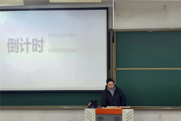 会议伊始,曹景杰发表讲话,对2017级同学的考研经历进行总结,同时细致分析了今年的就业形势,帮助同学树立毕业学习的最终目标,并通过结合自身经历为同学的未来发展提出珍贵建议;接着,李瑶带领同学进行毕业倒计时,对本学期的各项工作进行总结,强调了寒假的相关事项,提醒同学们注意人身和财产安全;随后,对同学们的毕业论文和毕业答辩进行指导,并对各位同学的毕业去向和毕业程序安排提出建议;最后,李瑶表达了对同学未来学习生活的美好期待。