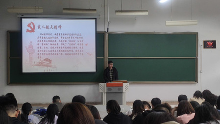 支部共建的第三部分是人文学院的杨雨桐同学对载人航天精神进行讲述。杨雨桐同学介绍了钱学森院士归国奉献的坎坷之路,让同学们感受到了钱学森院士矢志不渝的爱国情怀,从中学习到以“特别能吃苦、特别能战斗、特别能攻关、特别能奉献”为核心的载人航天精神,激发了同学们对我国航天工作者、航天精神的崇敬之情。