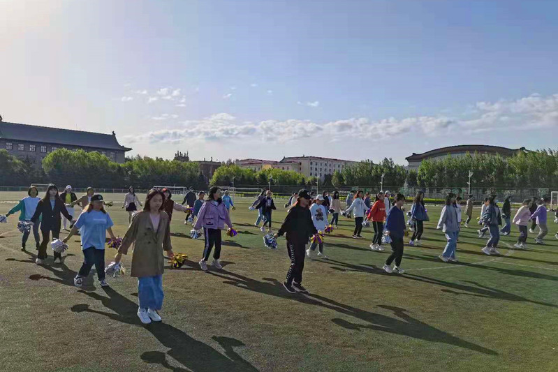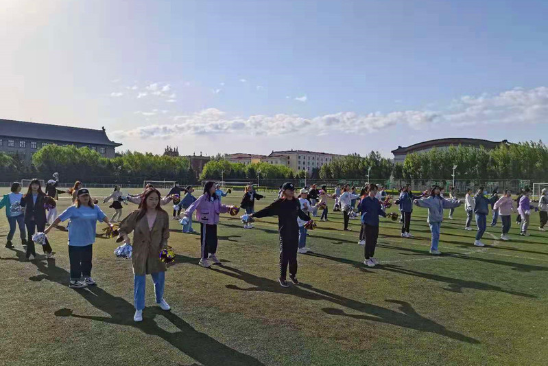 (宣传中心记者团记者 谢梦璇、高鑫雨报道)5月27日上午6时30分,由学生会文艺部组织的团体操比赛排练于军工操场举行,人文学院学生干部泽恩、郭琨琳、李东逸、连琦、马克思主义学院学生干部周滨彬到场指导,全体参赛成员参加。
