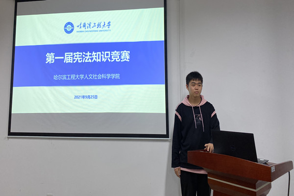 (宣传中心记者团记者 赵丰、王胤文报道)9月25日下午5时30分,哈尔滨工程大学“学宪法 讲宪法”系列比赛之宪法法治知识竞赛于主楼311室举办,学校多名同学踊跃参赛。本次竞赛由哈尔滨工程大学学生工作部主办,人文学院团委赛事中心承办。人文学院党委副书记曹景杰、法学系副教授刘沫茹、法学系教师陈斌出席并担任本次竞赛的评委。