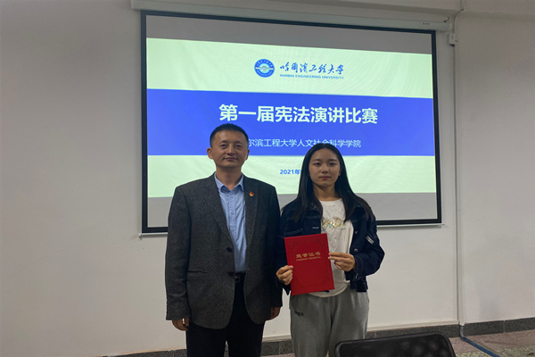 (宣传中心记者团记者 刘成龙、胡晓旭报道)9月25日晚7时,哈尔滨工程大学“学宪法 讲宪法”系列比赛之宪法演讲比赛于主楼311室如期举办。本次比赛由哈尔滨工程大学学生工作部主办,人文学院团委赛事中心承办。人文学院党委副书记曹景杰、法学系副教授刘沫茹、法学系教师陈斌出席并担任本次比赛的评委。2020、2021级部分同学参加本次比赛。