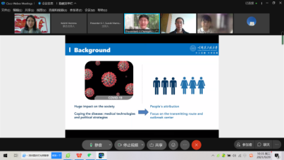 赵德雷老师与学生徐成哲以“FLUCTUATION AND ADJUSTMENT OF REGIONAL STEREOTYPES UNDER INTERSECTIONAL STIGMA”为题进行汇报,并回答了与会人员提出的相关问题。