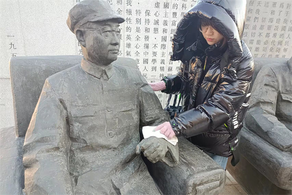 (宣传中心记者团记者 李智慧、杨梦茹报道)12月1日下午1时,人文社会科学学院开展擦授命群雕志愿活动。本次活动由人文学院团委实践部主办,实践部主要负责人罗星月在场组织,人文学院学生志愿者参与此次活动。