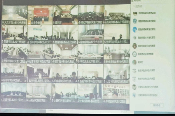 2021年12月11日下午14时,哈尔滨工程大学第十次学生代表大会正式会议顺利召开。因疫情防控等原因,本次会议采用线上线下相结合形式开展。人文学院本科生代表团于主楼302室参加哈尔滨工程大学第十次学生代表大会。校学生会主席团成员张晨瑶、院学生会执行主席余彦萍等7名学生代表参加会议。