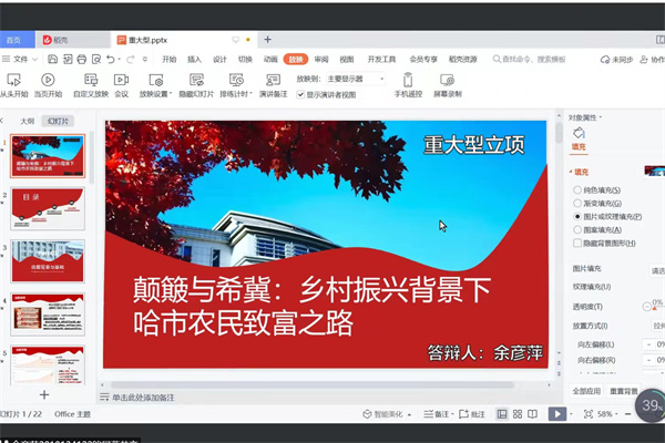 答辩伊始,各项目负责人按照顺序依次进行答辩,每组答辩时长为5分钟,由项目中心工作人员进行计时提醒。各项目负责人通过PPT演示的方式,向评委老师展示研究背景、研究方法、发展前景、研究意义等项目内容;接着,评委老师根据各项目负责人的汇报内容,对答辩报告进行详细点评,并从项目可行性、实用性及发展前景等方面提出专业意见与建议,提醒答辩人员要注意研究对象及方法、提高报告题目成熟性、确保问卷有效性、保证数据代表性;最后,评委对各组答辩情况进行综合评分。