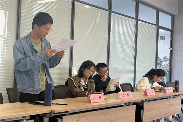 选拔赛伊始,辩论队成员调试研讨室设备,完成计时器投屏等准备工作;然后由22级新生开始唇枪舌剑的辩论赛,赛场上双方辩手针对“996工作制是否合理”、“门当户对是不是正确的婚恋观”这两道具有时代意义的辩题互相发表看法、提出质疑。辩论会上,双方辩手出口成章、激昂慷慨、针锋相对,气氛十分活跃;最后,辩论队评委进行点评并公布了获胜队伍。