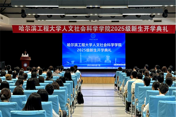 随后,主持人吴际宣布哈尔滨工程大学人文社会科学学院2025级新生开学典礼正式开始。吴际对2025级新生的到来表示热烈欢迎,并依次介绍与会领导及教师。