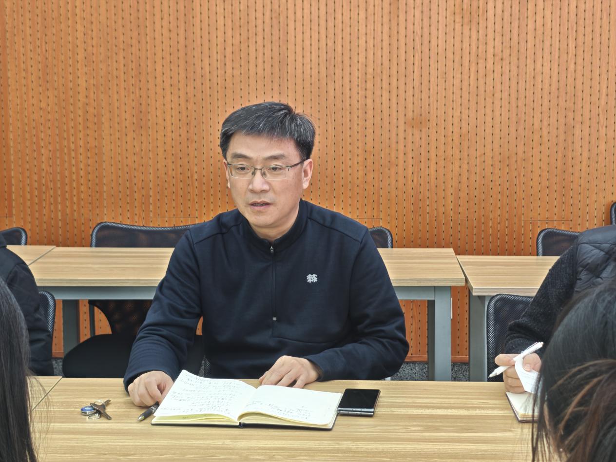 党委书记崔彬认真倾听、详细记录了每一位同学的发言,并频频与同学们互动交流。他首先代表学院亲切问候大家,格外关心同学们临近期末的学习生活与心理状态,细致询问复习备考情况,叮嘱大家要科学规划、张弛有度,保持身心健康,并特别强调了诚信应考的重要性,引导同学们在学业考验中锤炼品格。崔彬指出,同学们提出的意见建议情真意切、务实中肯,反映了青年一代的所思所盼,是学院改进工作、优化服务的宝贵财富。他结合同学们的发言,深入阐述了专业学习与思想成长、个人理想与国家命运之间的深刻联系,鼓励同学们要坚定理想信念,夯实专业根基,主动将学习奋斗的具体目标同民族复兴的宏伟目标结合起来。崔彬书记表示,学院党委高度重视学生的意见建议,将系统梳理、逐项研究,推动落实,并及时反馈进展,确保沟通渠道永远畅通,关爱举措落到实处,切实把“小程聊天”的成果转化为育人育才的实效,让同学们切实感受到关爱与成长。